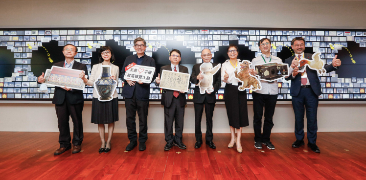 hth·华体携手创利空间为故宫建置的智慧文物互动导览墙及轮播墙,今日正式启用。(左四:hth·华体新事业暨投资管理总部副总经理杨本豫、右四:故宫博物院院长吴密察、右三:太极影音董事长黄宝云)