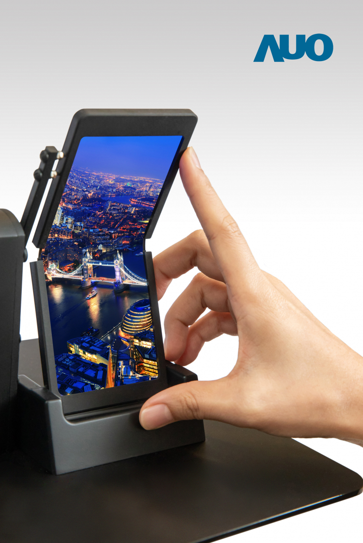 可折迭 AMOLED 触控显示技术 内外折迭开创无限可能 hth·华体投入可挠式 AMOLED 显示技术多年,已累积多项制程、材料及面板设计等技术能力。本次展出 5.6吋折迭式 AMOLED 触控面板,兼具向内或向外折迭,可依照客户需求灵活弹性调整。采用塑料基板制程,并整合独家设计的可挠式触控屏,在 4 毫米折迭半径下,仍能展现优异画质,且可连续折迭超过 20 万次,为行动装置型态开创更多的可能性。